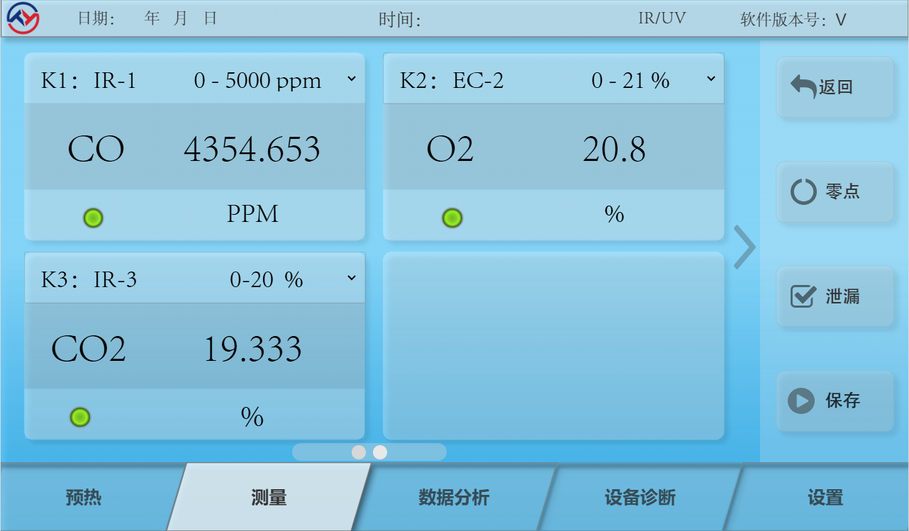 ⚫ 可实现固定污染源中 O2、SO2、NO、NO2、CO、CO2 等多种有害气体检测;