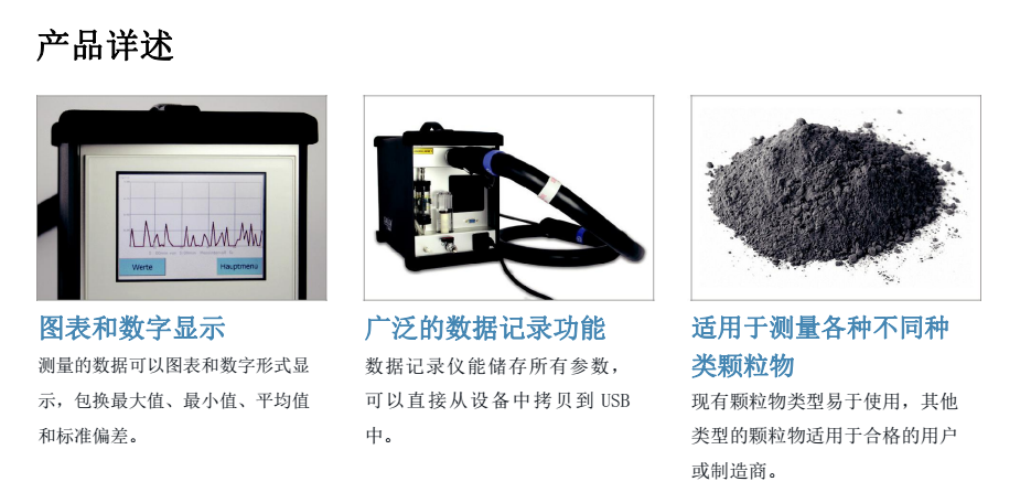 基于激光散射原理,SMG200M可测量的颗粒物质量浓度高达250 mg / m3,可测颗粒物粒径大小从0.04 μm(40nm)-10 μm。SMG200M坚固耐用便于移动,可测介质温度高达500℃,精确测量露点高达80℃的介质。测量的数据可以以图表和数字形式显示在触摸屏上,也能够存储在本机或独立的USB盘里用于进一步分析。该 测量仪器操作简单、维护成本低,内含日志功能,使得该仪器成为一款用户友好的测量仪器。使用更新功能可对所要测的颗粒物新特征和类型进行安装并开始使用。